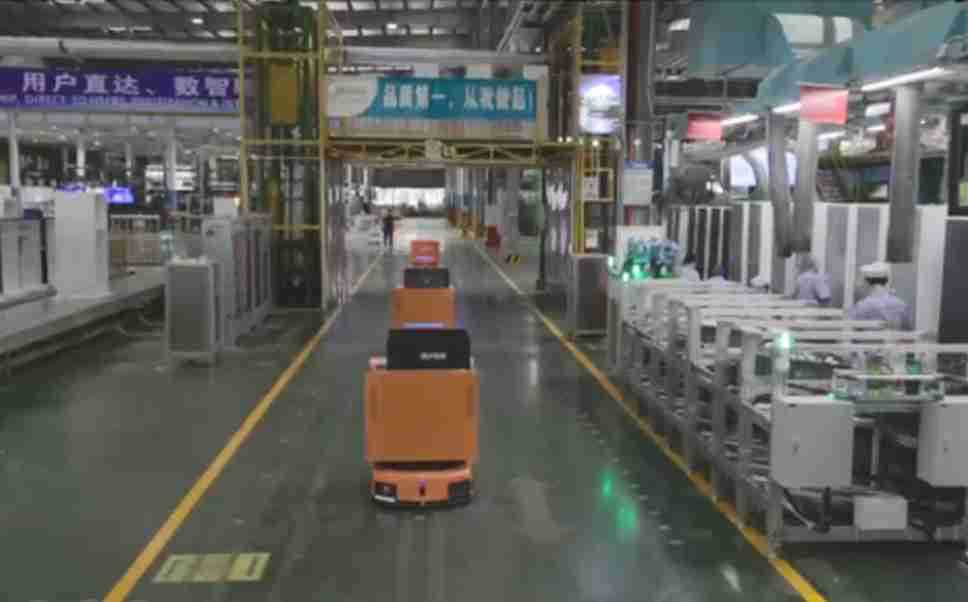 为车载冰箱物流配送打造的智能解决方案,,包含产中物流通过潜伏举升AMR搬运至线边,,产后成品物流智能仓储,,流程包含产中物流智能齐套入库,,,,线边安灯叫料AMR智能配送至线边,,成品入库、、、、出库,,,通过无人堆高车机器人,,,智能仓储管理替代人工作业管理,,,实现更高存储、、、、更高效率、、、、更具柔性化的解决方案。。。